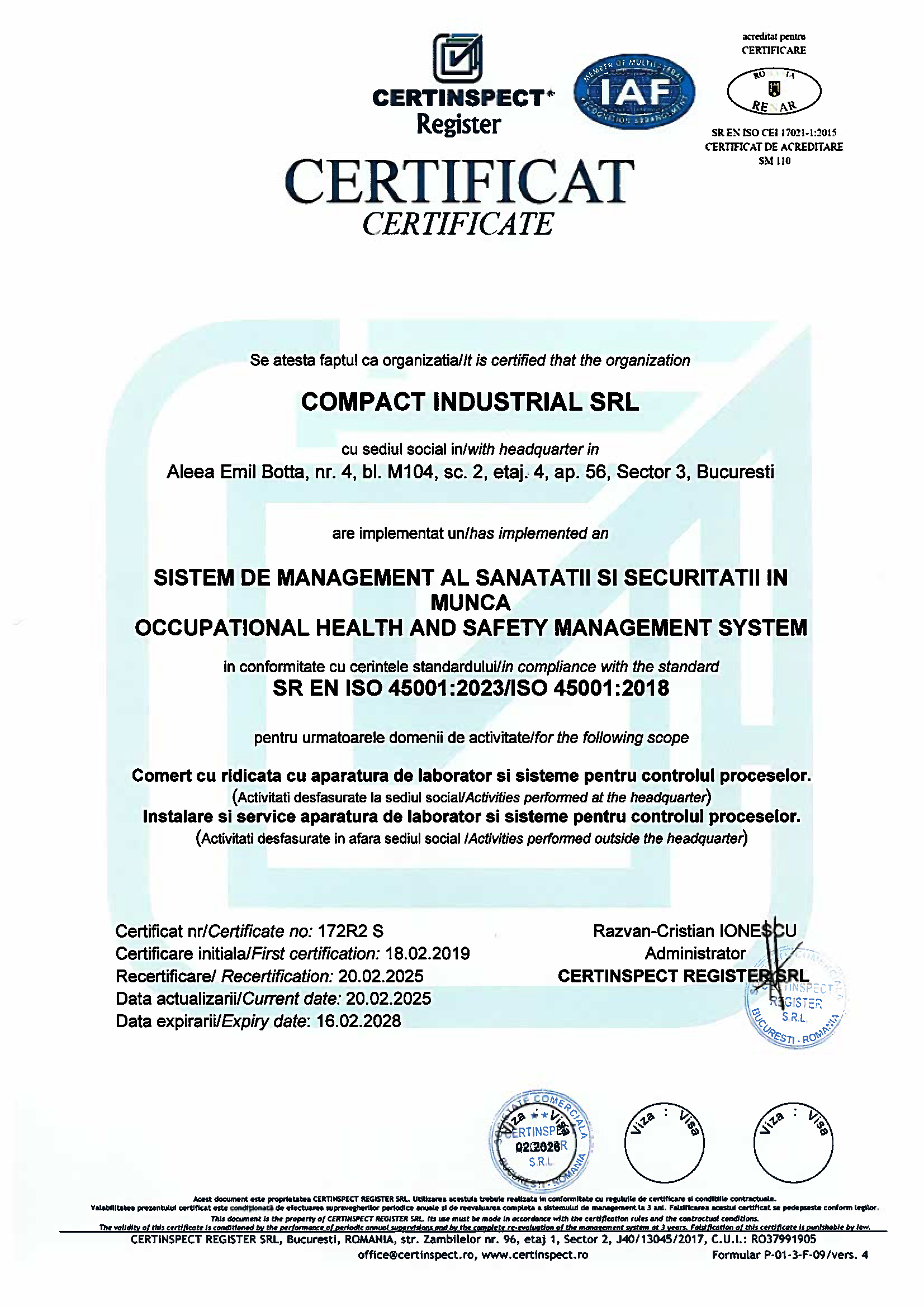 SC Compact Industrial SRL isi rezerva dreptul de a modifica si actualiza in orice moment continutul acestui website, precum si Politica de confidentialitate si Termenii si conditiile generale, fara nici un fel de notificare prealabila.